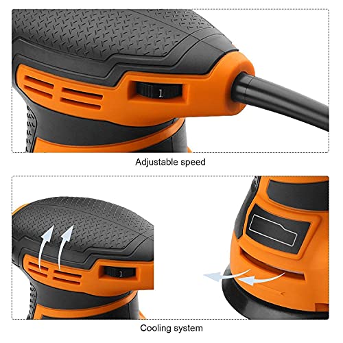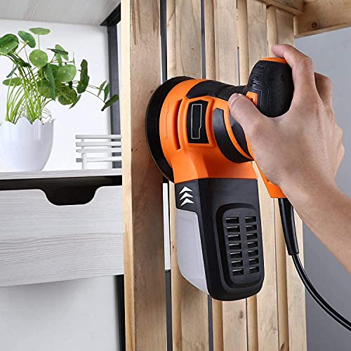 Lijadora Eléctrica Tacklife, 350W con 6 Velocidades Ajustables 13000RPM, Lijadora Orbital con 12 PCS Papeles de Lija de 125mm (80, 180 Granos), Cable de 3 Metros con Caja de Recogida de Polvo