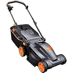 Cortacésped Eléctrico Tacklife, 1600W Cortacésped, Ajuste Sin Herramientas, 37cm Ancho Corte , 6 Alturas Corte (25-75 mm), 3 Alturas Mango, Mango Telescópico, 38L Colector con Indicador